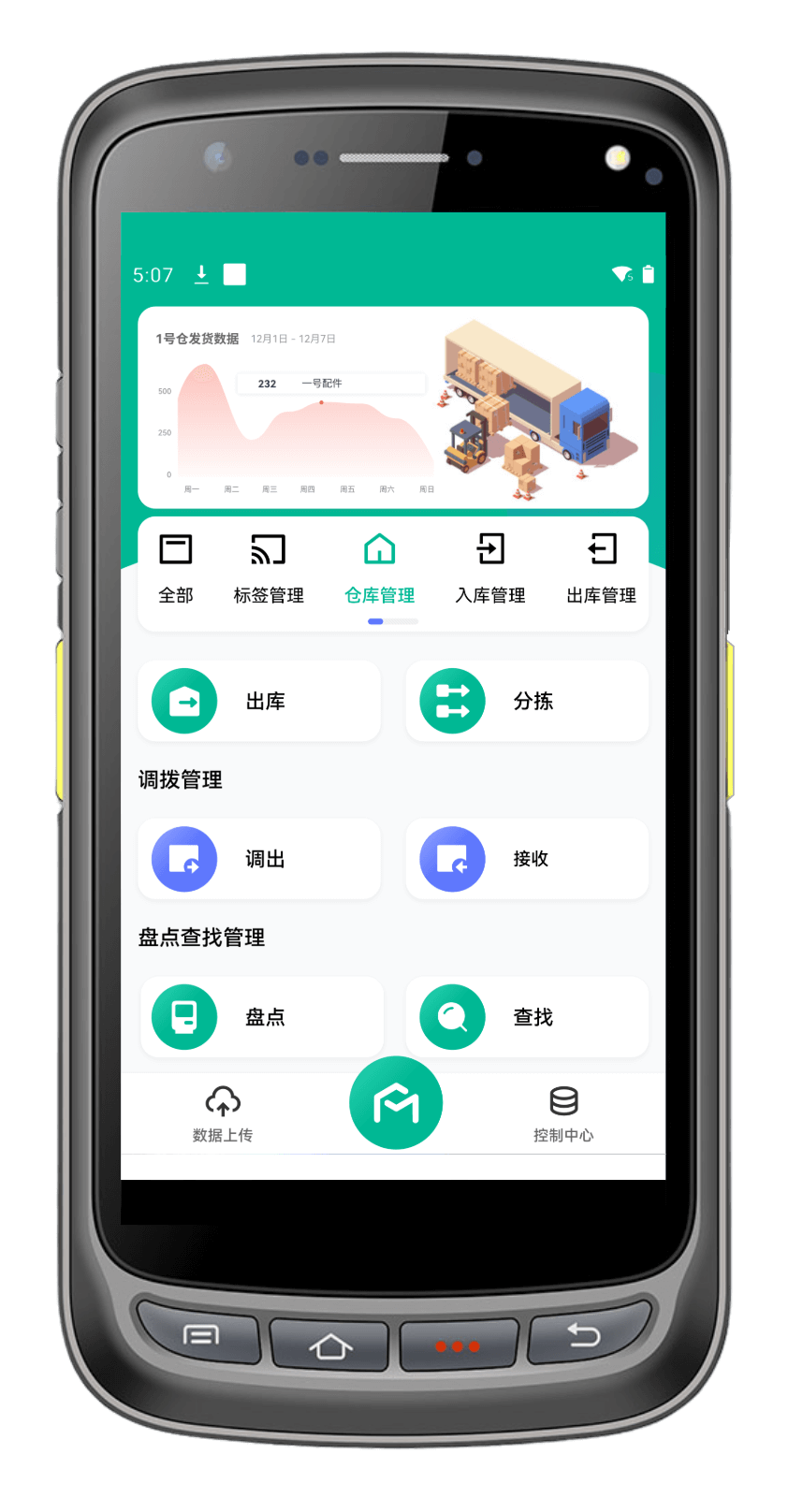 可快速批量扫描RFID标签,实现批量出入库、盘点、